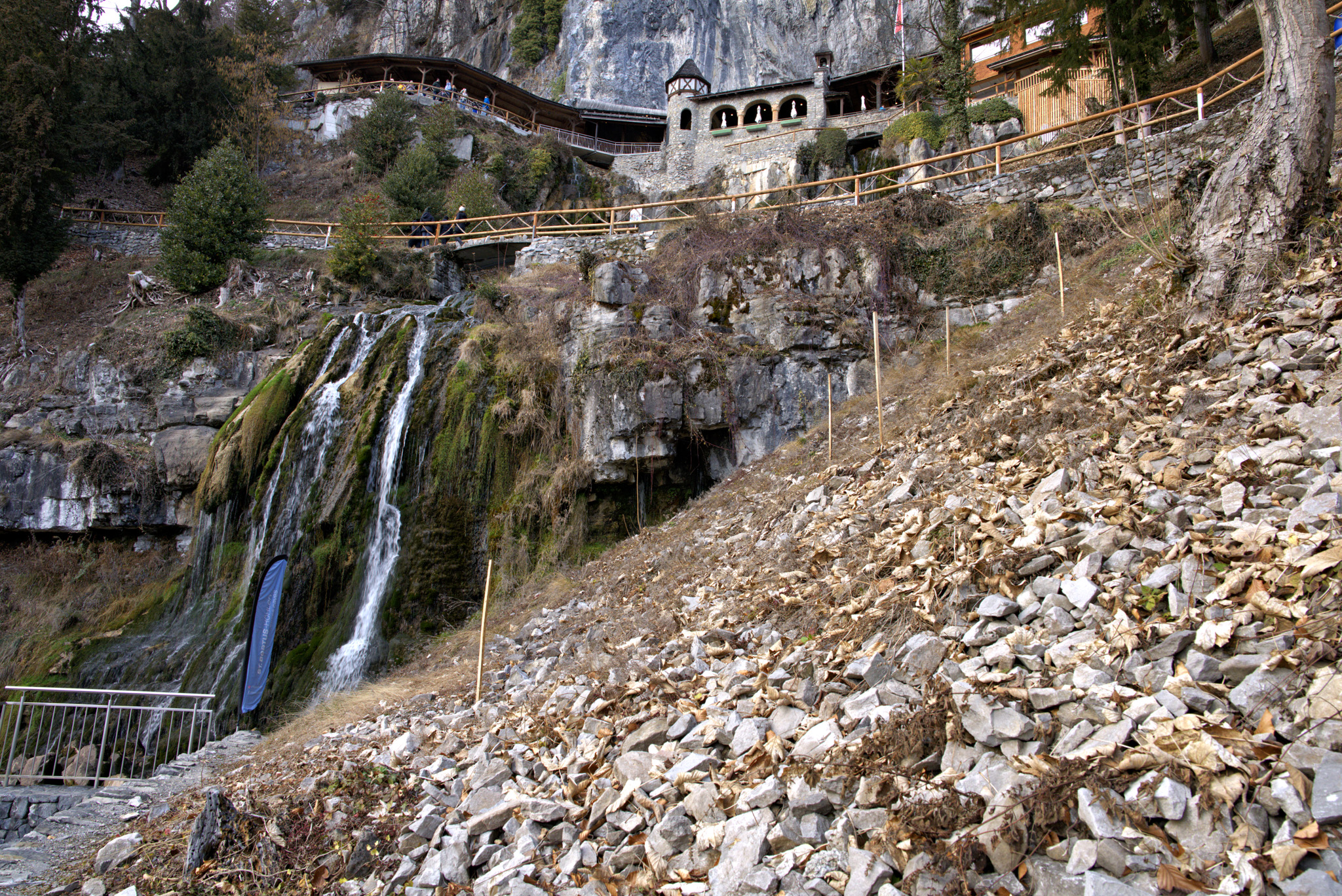 Vor und nach der Höhle lohnt sich der Blick auf den Wasserfall am Eingang – und im Höhlenmuseum bekommst du Hintergrundwissen, das im Eintritt inbegriffen ist. Wer möchte, verbindet den Besuch mit einer Pause im Restaurant vor Ort. Zur Stimmung passt auch die Legende: Der heilige Beatus soll hier gelebt und einen Drachen vertrieben haben – ein schöner Mythos für Gross und Klein.