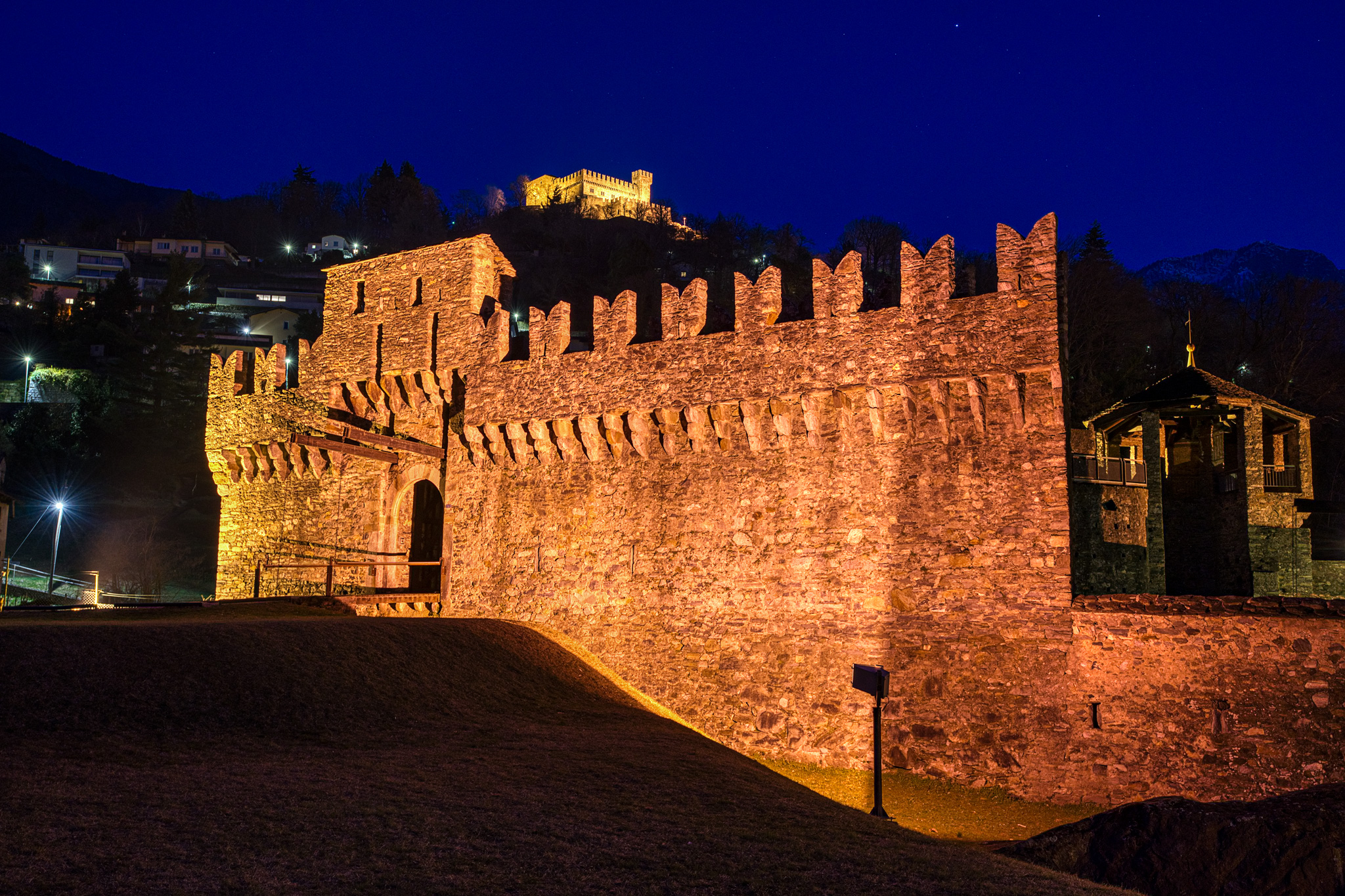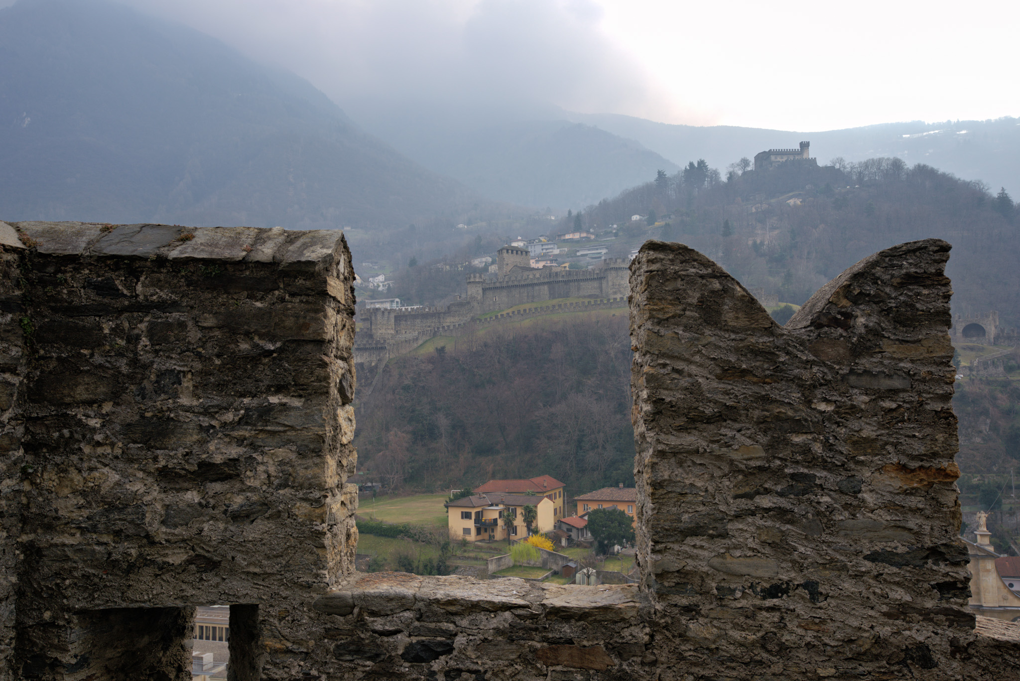 Die Anlage wurde an einer strategischen Stelle gebaut, um das Tal des Ticino und die wichtigen Alpenrouten zu kontrollieren – entsprechend eindrücklich sind die Türme, Tore und Verteidigungslinien.