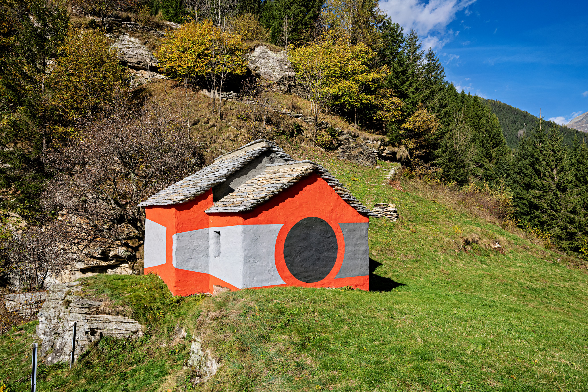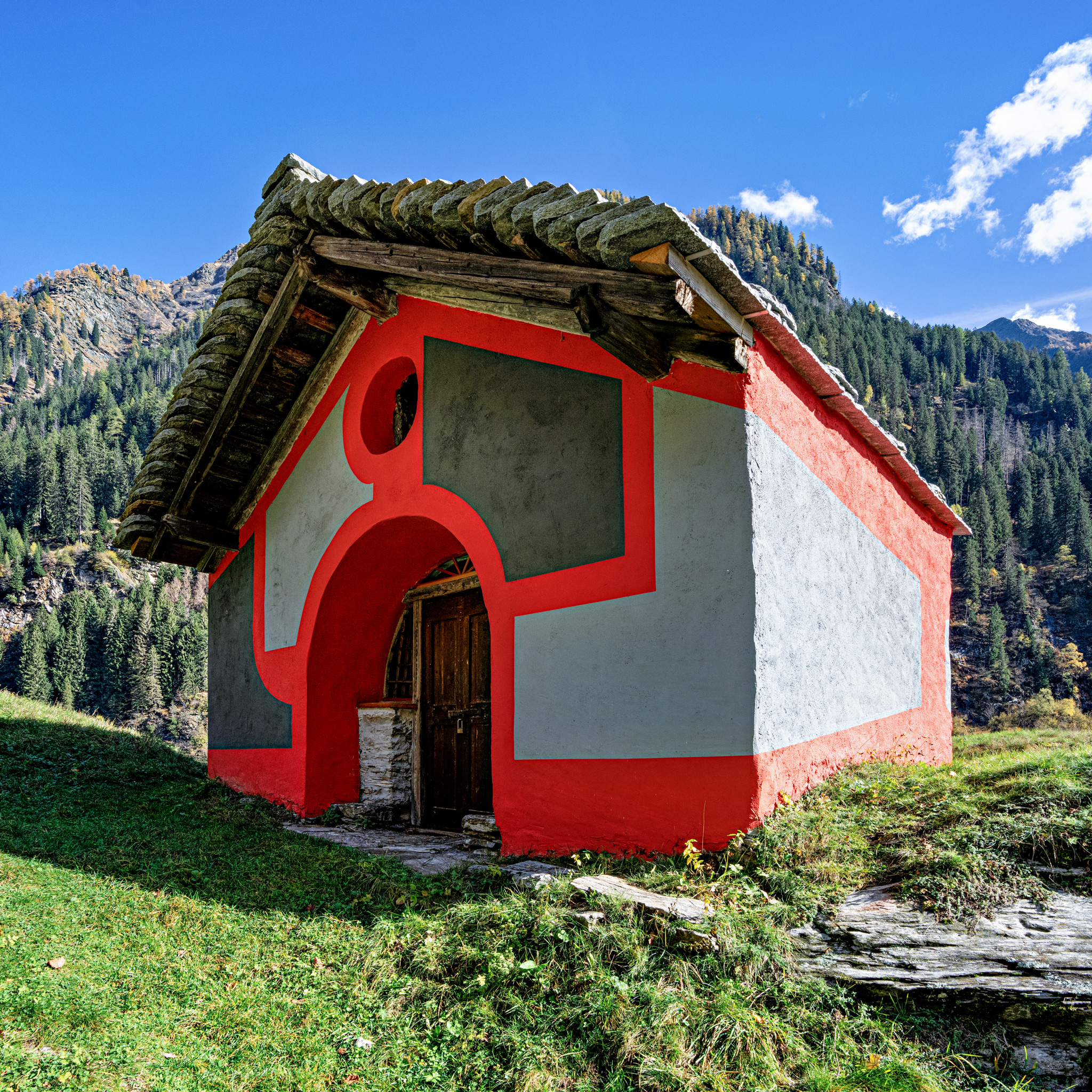 Von Rossa im idyllischen Calancatal führt ein neuer Spazierweg zu drei historischen Kapellen mit modernen und abstrakten Motiven an den Aussenwänden. Besucher erleben dabei nebst der wunderschönen Natur des Parco Val Calanca, die traditionelle Architektur der Region in Kombination mit der modernen Kunst.