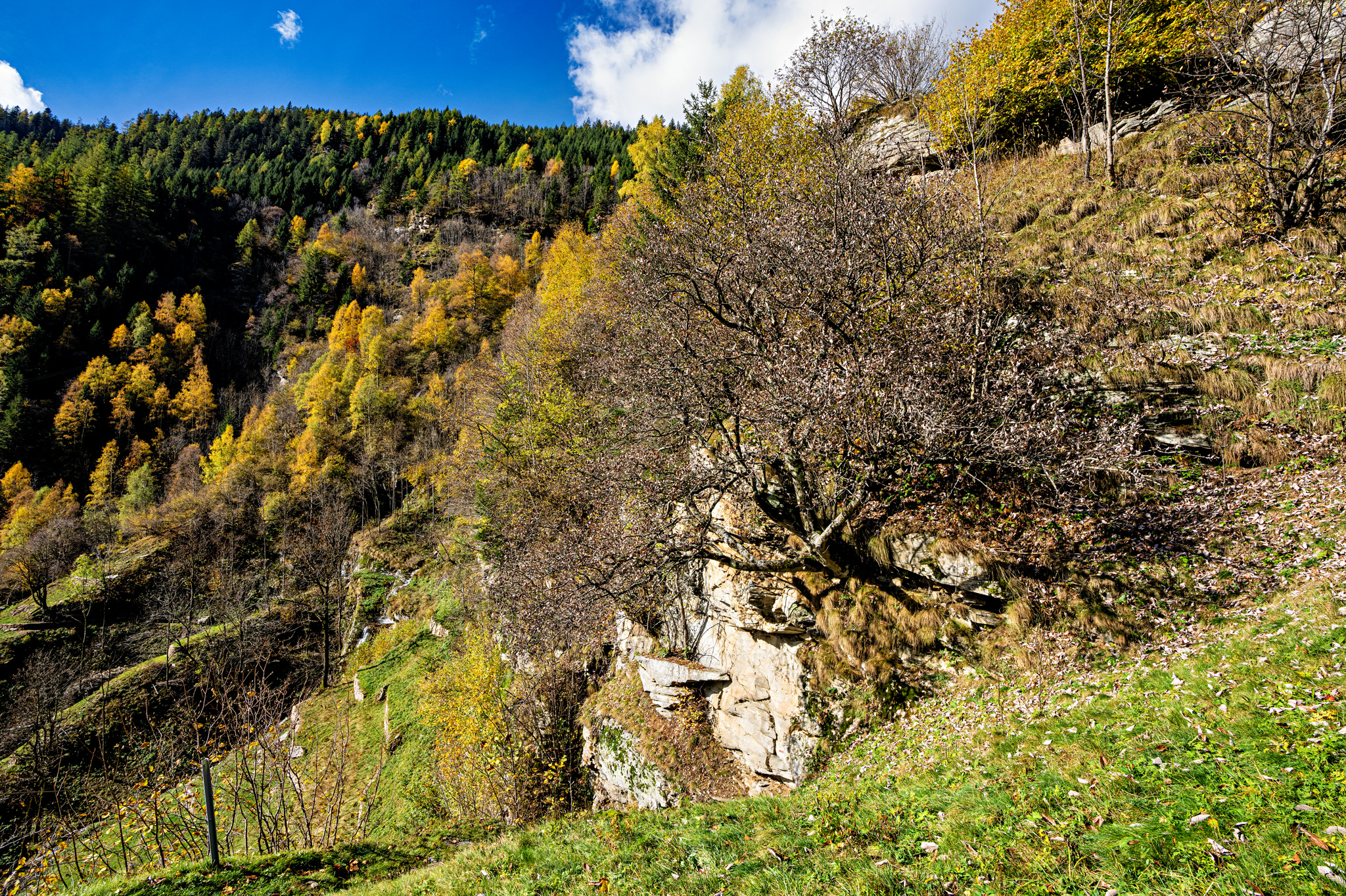 Zu Fuss geht es von Sabbion, der Häusergruppe gegenüber von Rossa, weiter hinauf zur Siedlung. Beim Brunnen lohnt es sich eine erste Pause einzulegen, bevor es noch ein Stück weiter hoch geht zur rot gestrichenen Kapelle Madonna del Sangue. Oben angekommen, ist die Aussicht wunderschön. Wer mag verlängert die Wanderung und spaziert weiter hinauf zum Pro de Leura auf 1416 Meter. Ansonsten geht es hinunter zur dritten Kapelle Santa Maria Maddalena al Calvario, die in kräftigem Gelb und Braun leuchtet. Der Tag in Rossa kann mit dem Besuch der Kunstwerke aus Lärchenholz (Projekt Ispace) erweitert werden. Sie stehen entlang eines Wanderweges im Wald und ermöglichen den Besuchern eine andere Wahrnehmung von Raum, Klängen und Natur.