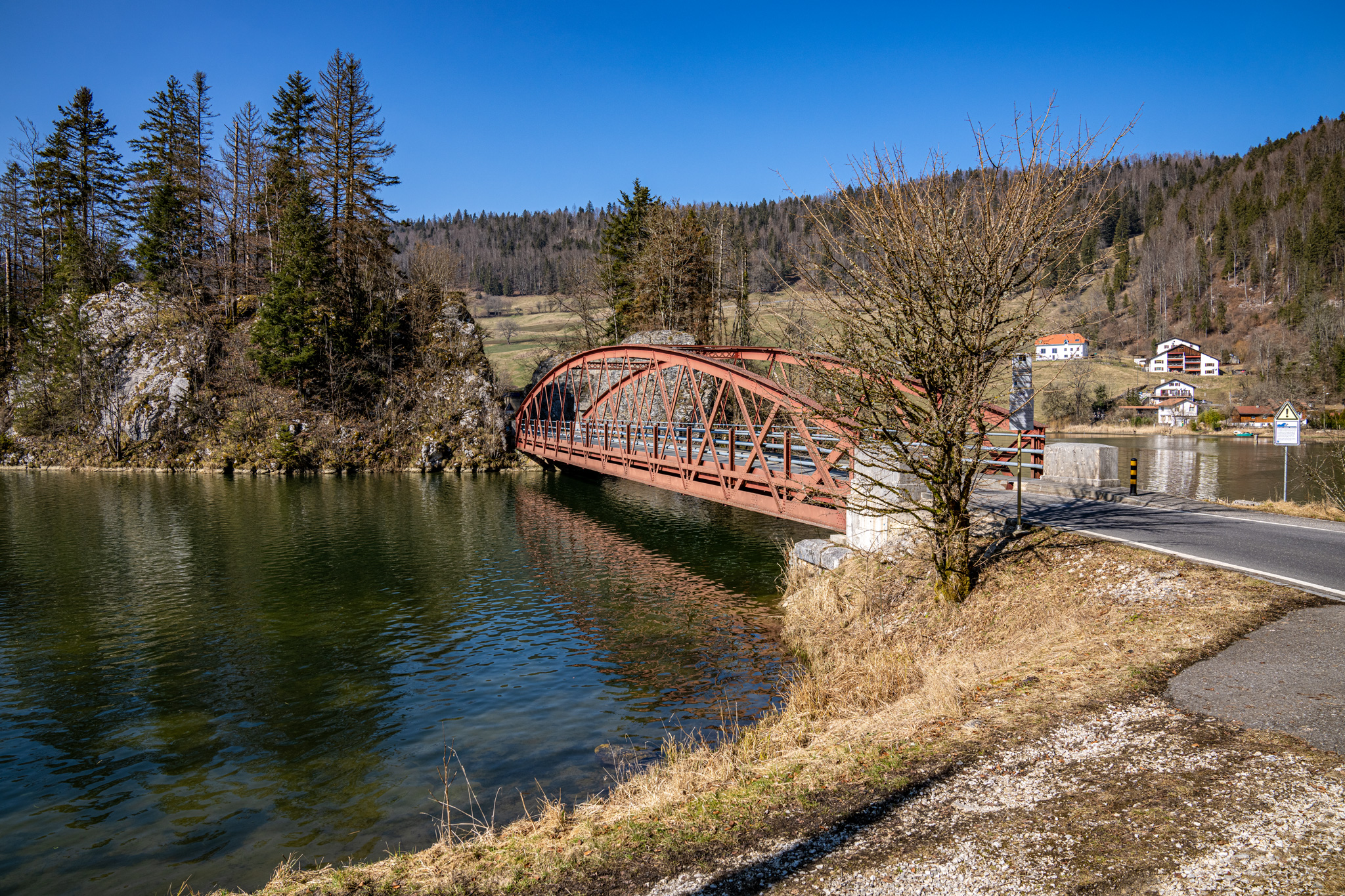 Ein Highlight ist der Lac des Brenets, ein schmaler, fjordartiger See, der vom Doubs gebildet wird.