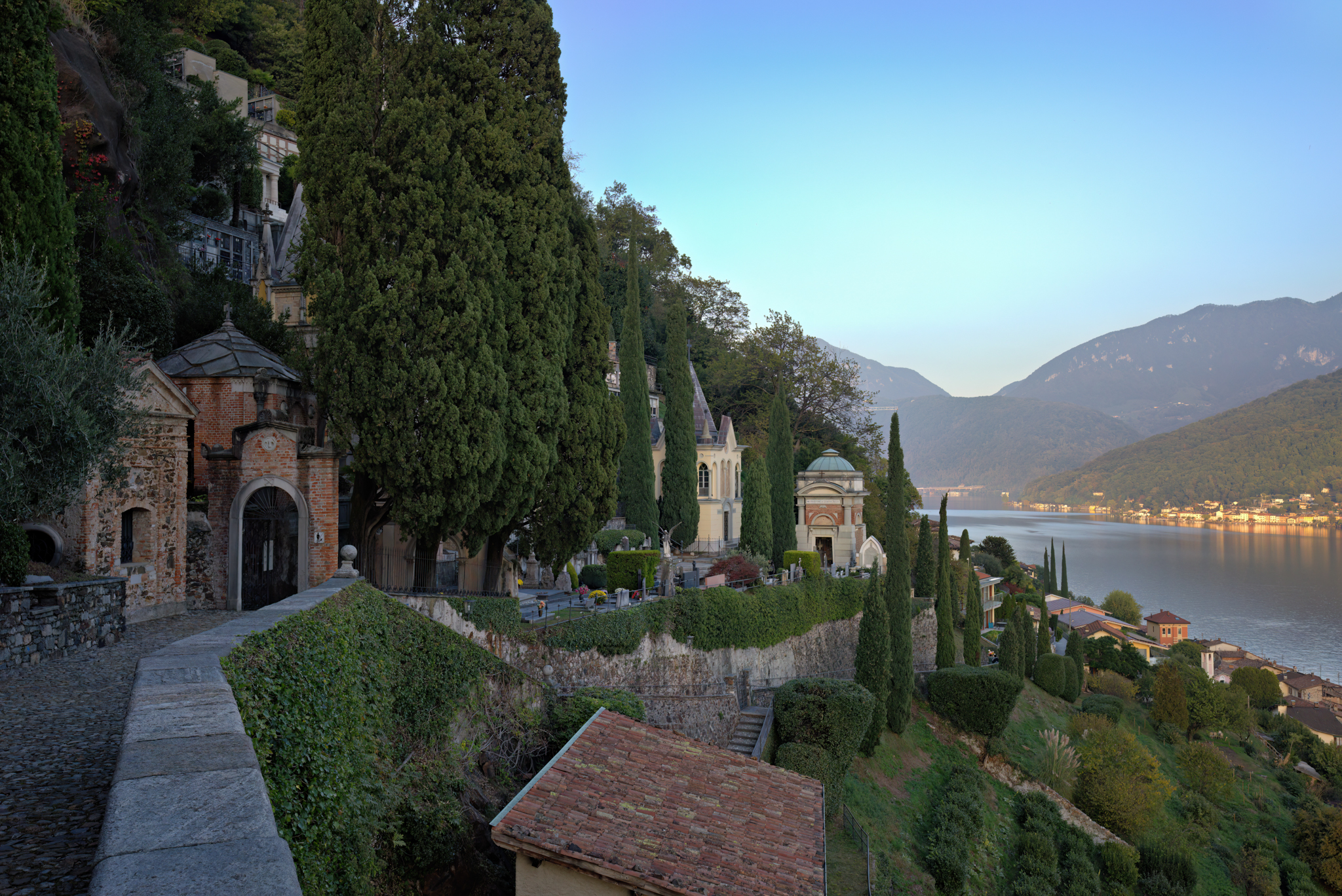Morcote ist geprägt durch seine Zweiteilung in einen profanen Teil am See und einen kirchlichen am Hang. Beide Teile verfügen über monumentale Ausprägungen.